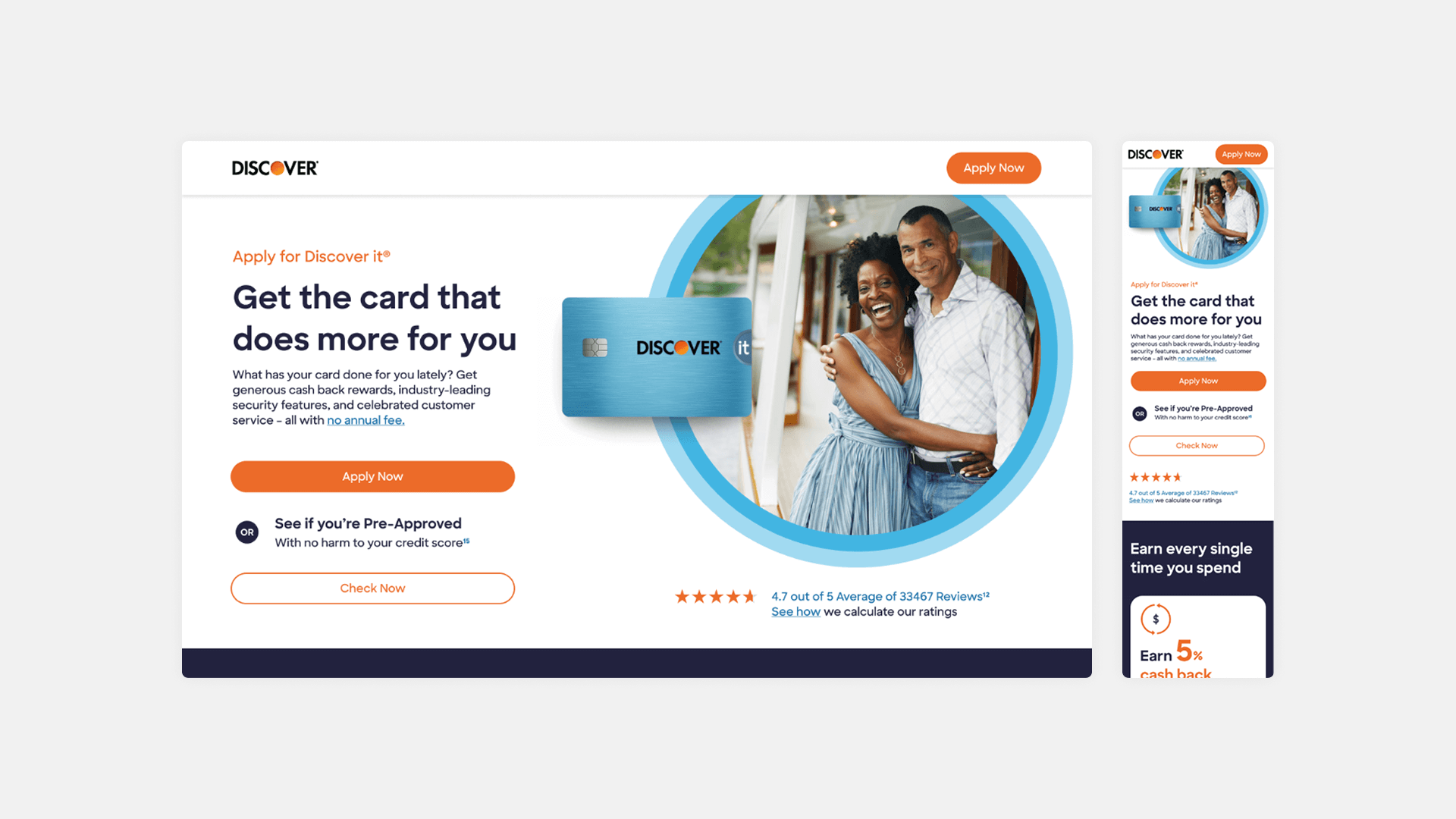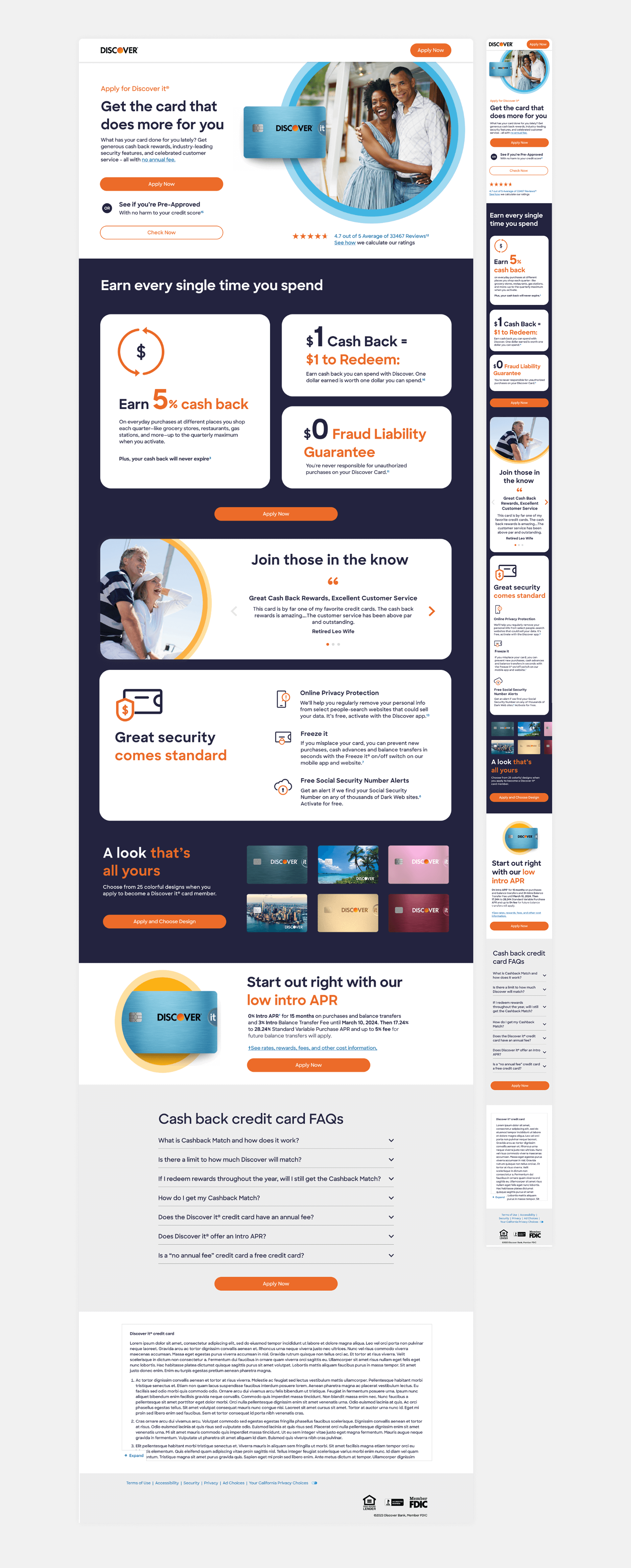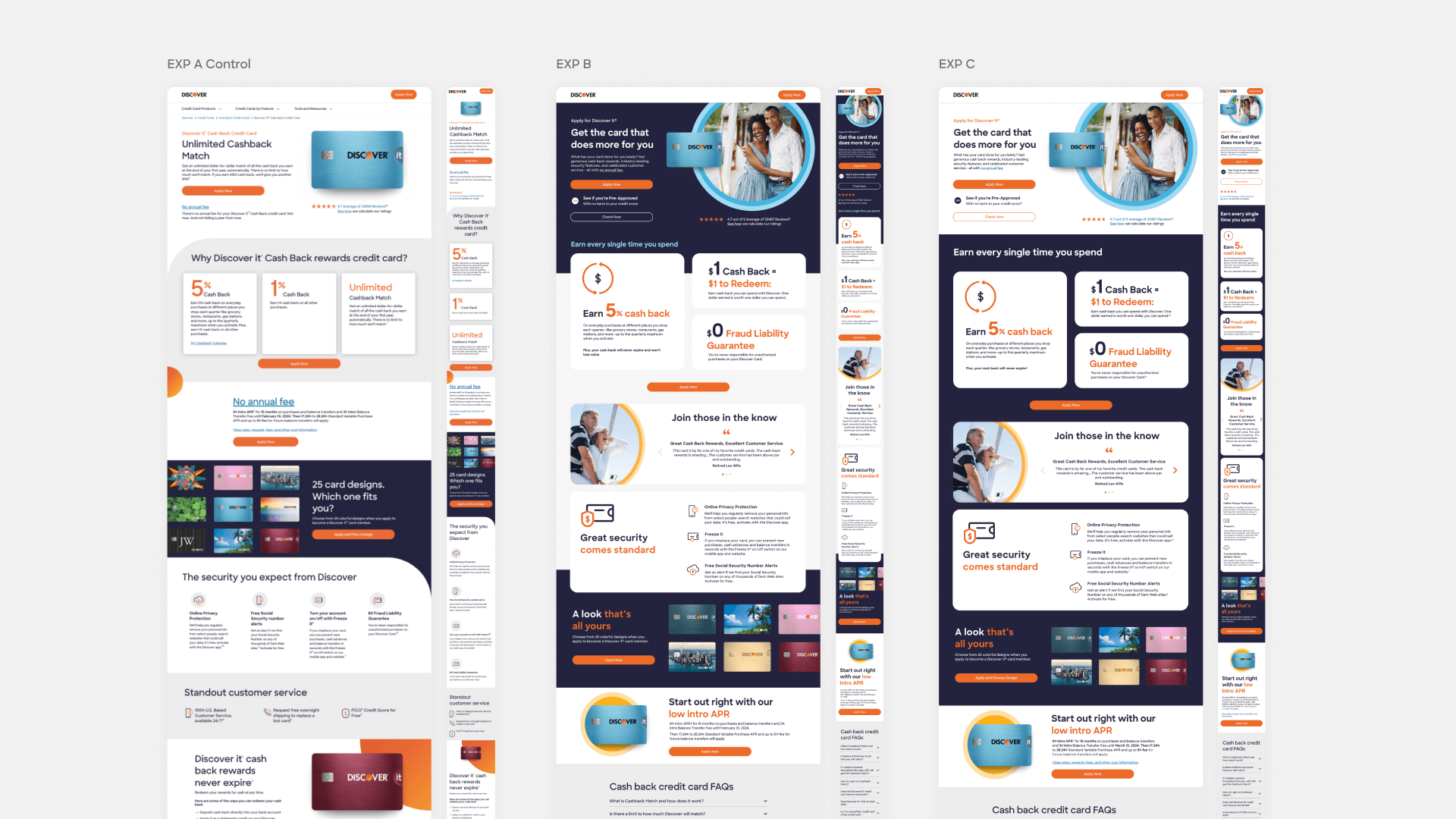 Our team runs A/B tests to optimize conversion rates across multiple Discover credit card pages. For this special page, Discover gave us full design freedom, allowing us to leverage insights from extensive testing data to create an experience that stands apart from the rest.